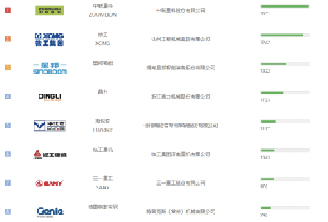 國(guó)內(nèi)市場(chǎng)的快速開拓,品牌銷量增勢(shì)強(qiáng)勁,重塑產(chǎn)業(yè)格局,高機(jī)品牌關(guān)注度蟬聯(lián)第一。